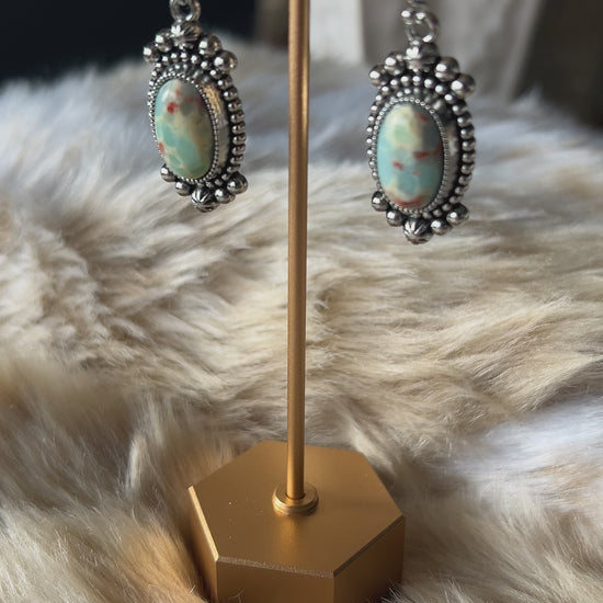 Delicate and timeless, the Calla Earrings bring a touch of western elegance to any outfit. Featuring turquoise-hued stones framed in intricate silver detailing, these vintage-inspired drops are lightweight, feminine, and perfect for both everyday wear and special occasions.