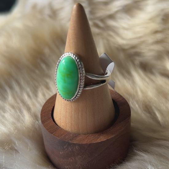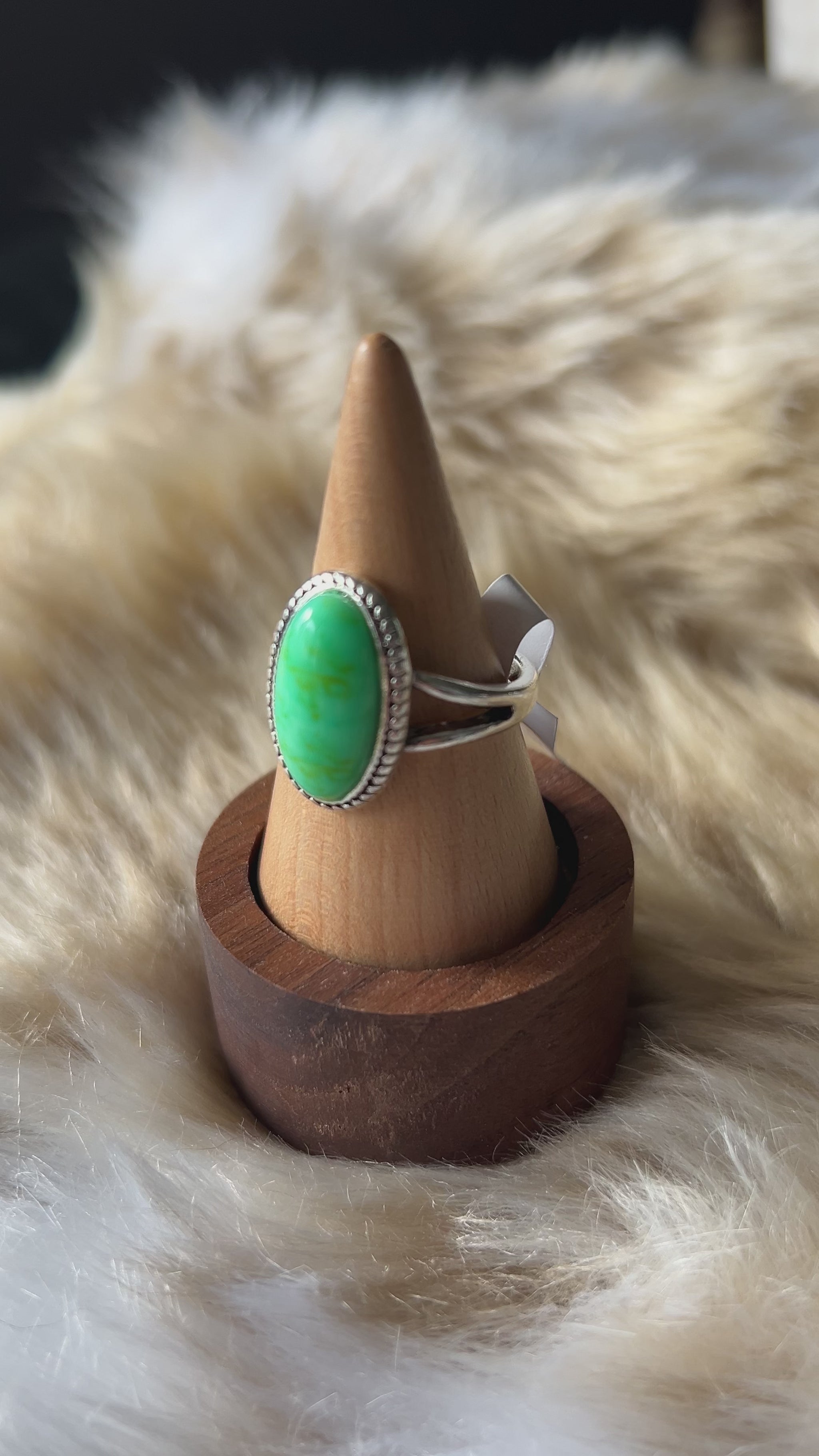 Bright, earthy, and full of western charm — Lennon is the perfect statement ring for everyday wear. Featuring a smooth green stone framed by a detailed silver setting, this piece balances boldness with a soft boho touch. Whether worn solo or layered with other rings, it adds a stunning pop of color to any outfit.