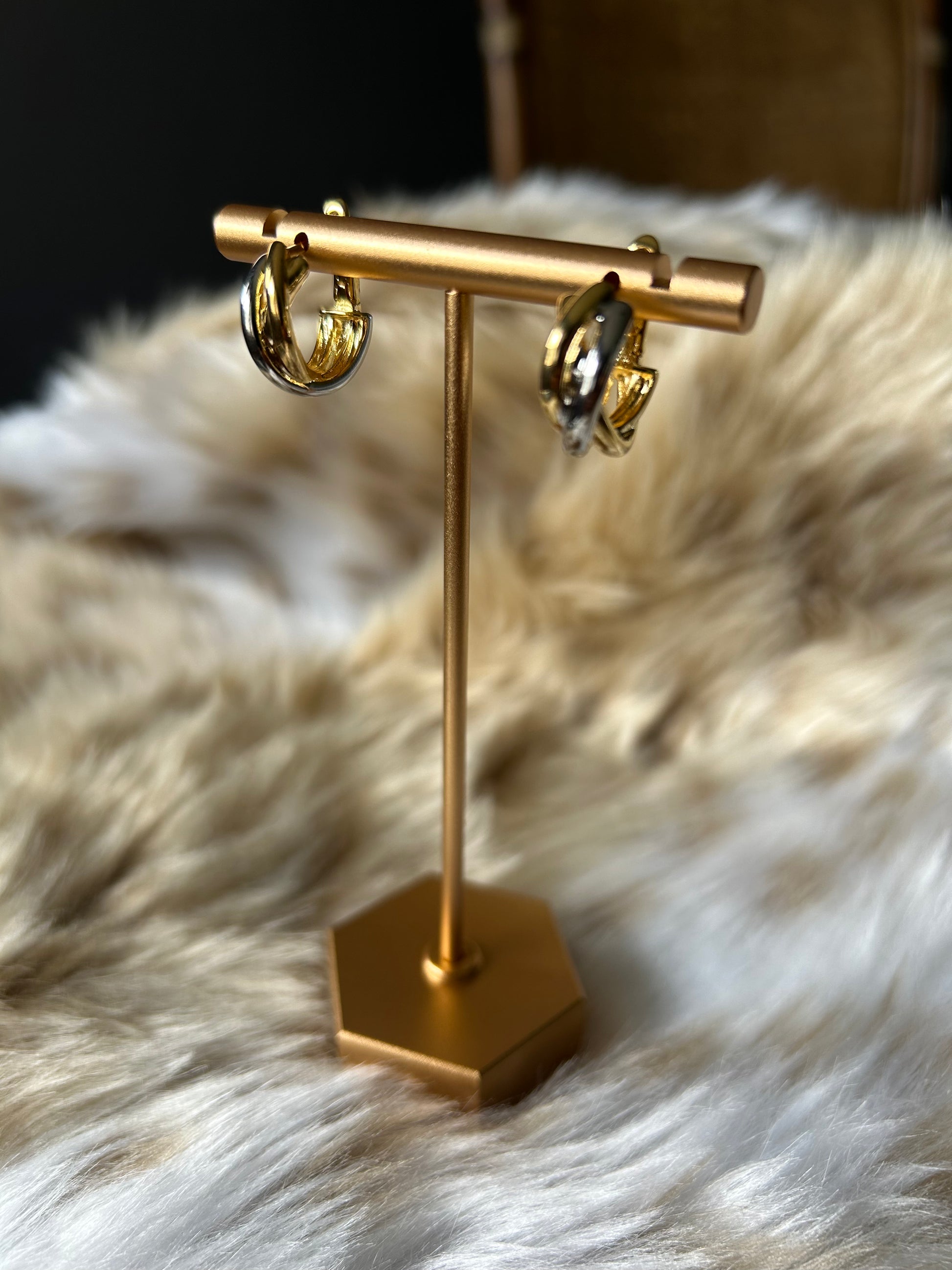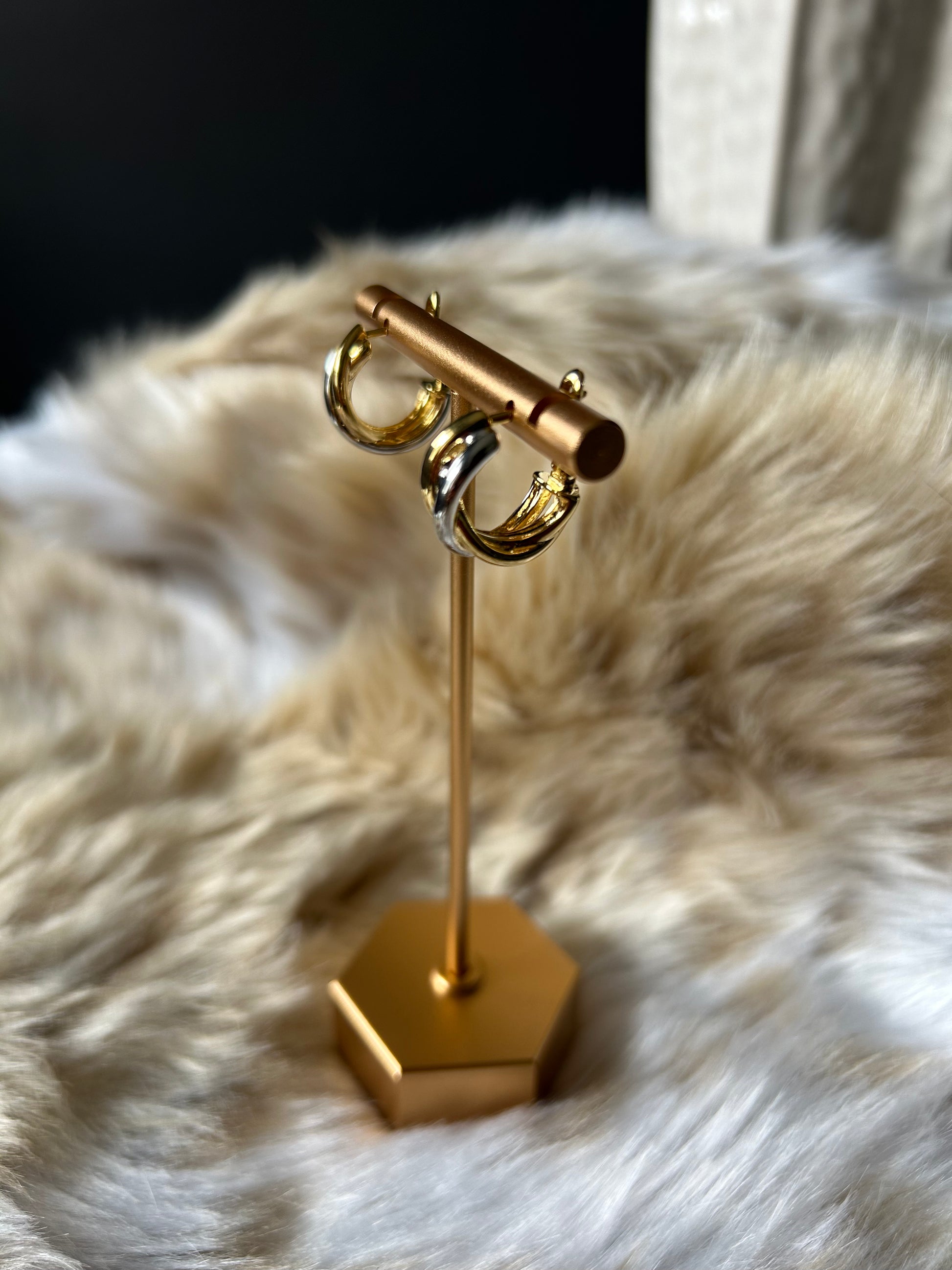 Double the shine, double the style. The Mila Hoops feature a modern twist on the classic hoop with gold and silver tones intertwined for the perfect two-tone look. Lightweight and versatile, these earrings are easy to dress up or down — whether you’re layering flannels, rocking a puffer vest, or heading out for a night in town.