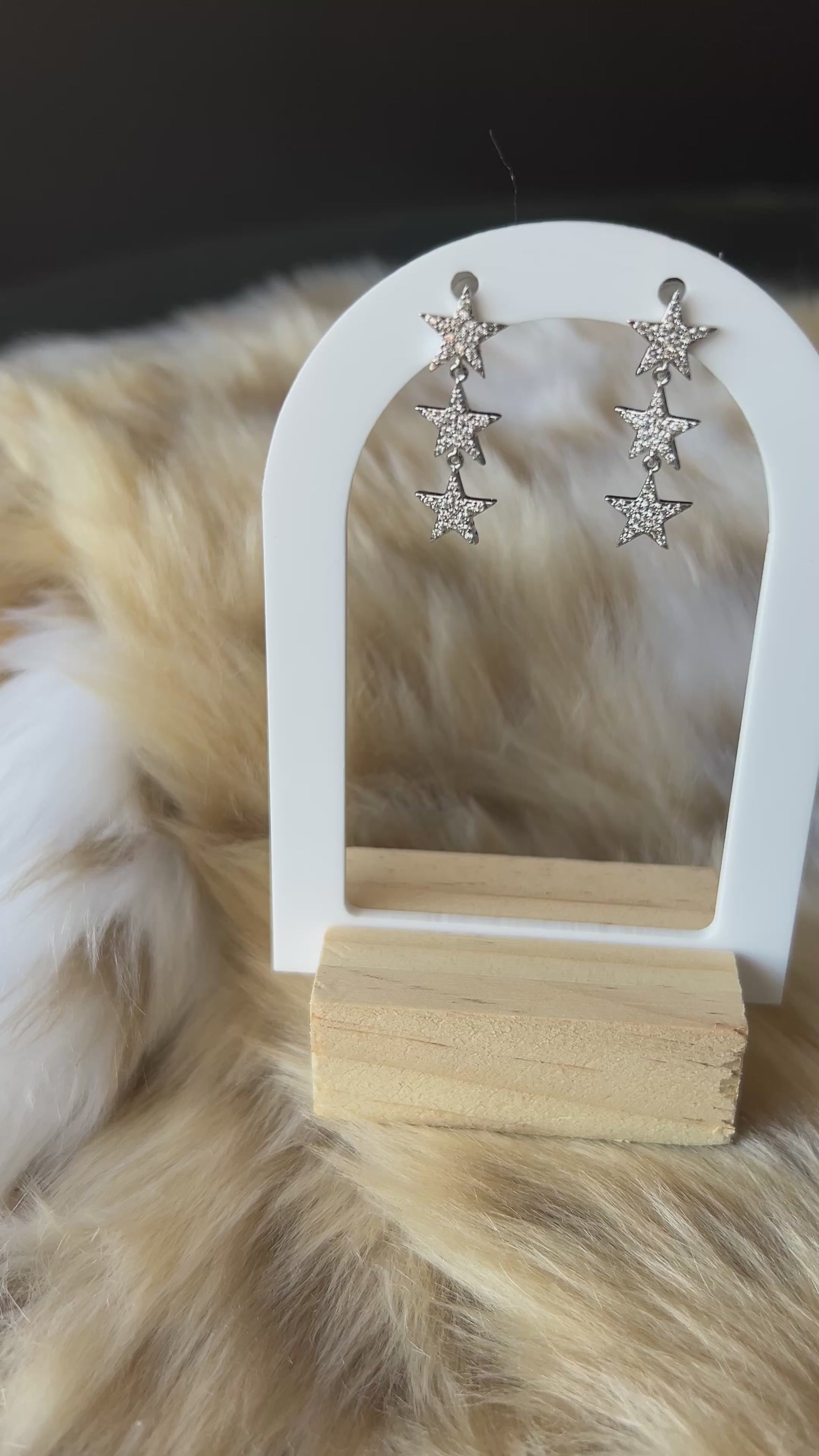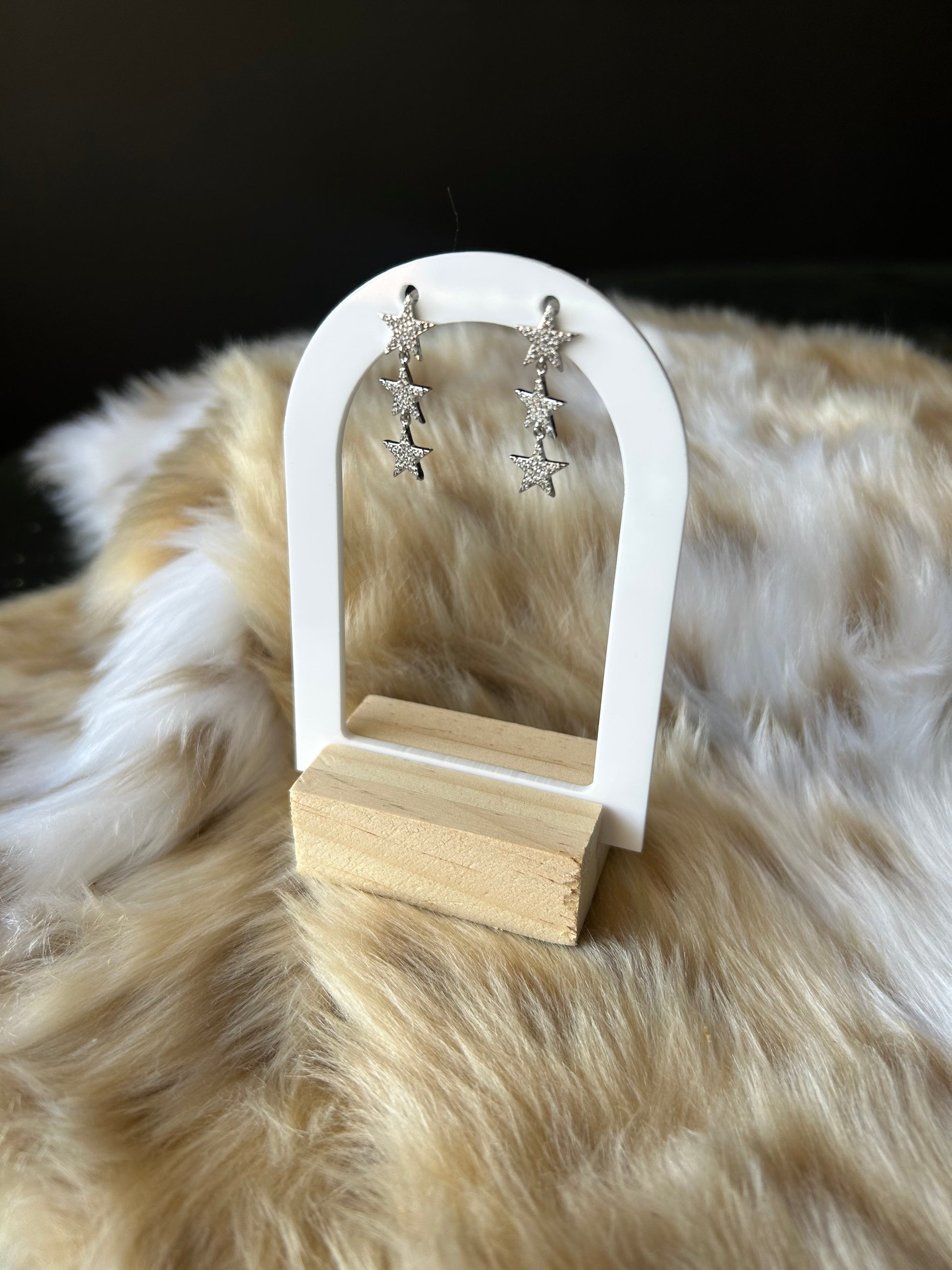 Meet the Stella Star Drop earrings — the ultimate celestial statement for your inner star. These star-tone earrings feature a cascading trio of rhinestone-studded stars that catch the light with every move. Lightweight, dazzling, and full of personality, Stella adds a touch of glam to any look — from concert nights to Sunday brunch.