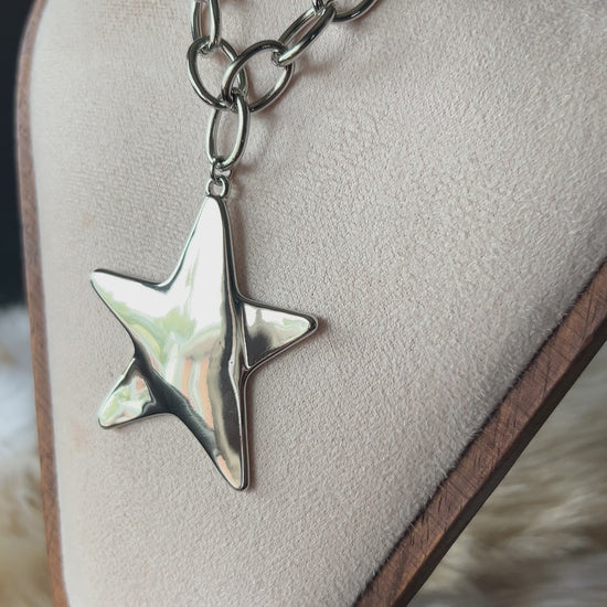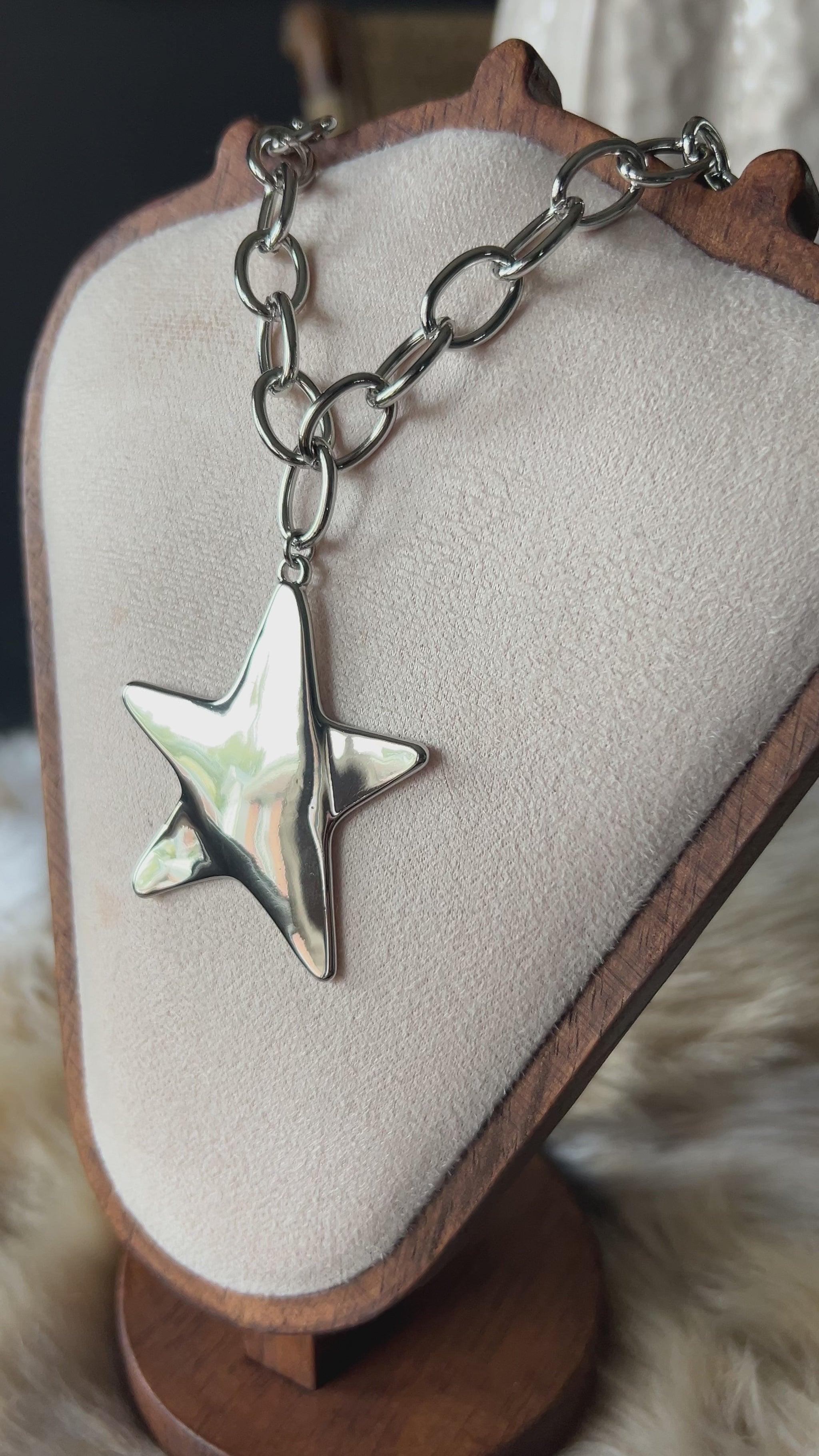 Make a bold yet timeless statement with our Stella Star Necklace — where minimal meets modern. Crafted with a chunky silver chain and finished with an abstract star pendant, this piece was made to shine. Whether layered or worn solo, it instantly elevates any outfit with sleek, effortless edge.